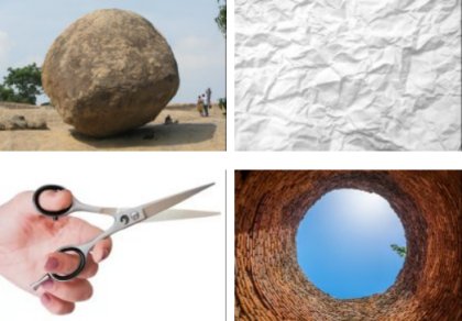 Un jour ancien, le dieu babylonien Mardouk vainquit le chaos pour prendre place au sommet du panthéon. En toute simplicité, faites de même sur le célèbre thème de la pierre, des ciseaux et de la feuille en transformant le hasard en probabilités. La pierre casse les ciseaux. Les ciseaux coupent la feuille. La feuille enveloppe la pierre. Vous connaissez sans aucun doute ce jeu de pur hasard pour l'avoir pratiqué dans votre enfance. Peut-être l'utilisez-vous encore pour savoir qui payera l'apéritif ou fera la vaisselle... On le nomme officiellement Pierre-Feuille-Ciseaux. Et le puits me direz-vous ? Ajoutons-le pour déséquilibrer le triptyque parfait et rappelons les conventions classiques. Un jeu bien connu