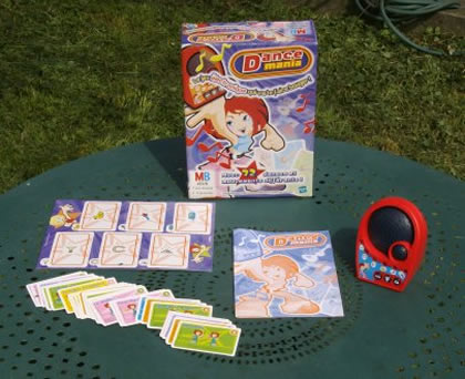 L'idée de Dance Mania : se trémousser en rythme sur une musique insupportable, en imitant le mouvement gracieux déterminé par l'une des soixante-douze cartes du jeu. 1) On allume la boîte à sons Dance Mania est LE jeu indispensable à tous les papas qui rêvent d'accompagner leurs grandes adolescentes en boîte. Enfin… disons que c'est la première étape nécessaire.