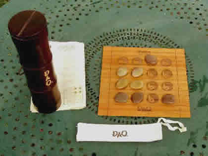À ma connaissance, Dao est le seul jeu de Jeff Pickering et Ben van Buskirk. Dao, d'abord édité à compte d'auteur sous la marque Playdao, a reçu le Mensa Select en 2001. En 2006, le voilà chez nous dans une magnifique édition en bambou et galets de rivière.