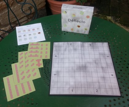 Déflecto reprend l'idée directrice du jeu désormais introuvable Le Camino : créer un chemin le plus court possible d'un point à un autre. Ce n'est pas le premier arrivé qui gagne mais celui dont le chemin est le plus optimisé. Il existe, avec son prédécesseur, d'importantes différences. La plus importante est que tout hasard disparaît, chacun disposant dès le début de toutes ses pièces, en tout point identiques à celles des autres. L'autre nouveauté, c'est qu'on peut jouer à quatre joueurs. Les auteurs proposent deux niveaux de jeu, selon que l'on peut utiliser une ou les deux faces des pièces. Le design de la boîte fait clairement « auto-édition » mais le plaisir de jouer est là, ce qui est l'essentiel.