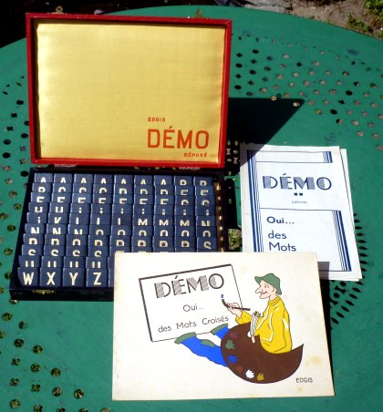 La boîte de Démo contient Démo (ce qui semble assez logique) ainsi que deux autres jeux : Le Naou, qui est en fait le Fermez la boîte, et le Chemin de fer - Kinaki-Naou, qui est une forme simplifiée du Martinetti Démo est livré avec deux règles. La première est un jeu de mots croisés aux règles minimalistes, laissant une très grande latitude aux joueurs pour convenir entre eux de ce qu'il convient de faire ou non. Le but du jeu est de terminer ses jetons le premier afin d'empocher la mise fixée en début de partie. La seconde règle, intitulée « Règle amusante », est en fait une adaptation du traditionnel Quart de singe qui ne nécessite aucun matériel. Sauf qu'ici, on a besoin des jetons du jeu !