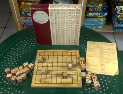 | Caractéristiques | non vu ailleurs, dés, jeu de pions, pions en forme de dé, tablier carré et pions, tablier 8 x 8 cases et pions | |||