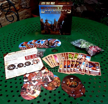 Les cowboys de Desperados of Dice Town ne doivent pas avoir une bonne mutuelle. En effet, chaque fois qu'un adversaire leur tire dessus, ils perdent de l'argent ! Bien qu'on soit dans un univers infesté de desperados, pas la moindre trace de sang. Peut-être est-ce plus « politiquement correct » ? À la tête d'une bande de cinq individus louches et tous emprisonnés, vous devez être le premier à les faire évader en même temps que vous restez le joueur le plus riche. Après avoir lancé les dés jusqu'à trois fois, vous décidez ce que vous faites de votre tirage : soit continuer à libérer un de vos compagnons, soit piocher une ou plusieurs cartes qui affecteront le cours du jeu. La difficulté, c'est qu'il ne faudrait idéalement négliger ni l'un ni l'autre. Les parties sont assez rapides et parfois très différentes de l'une à l'autre. Desperados of Dice Town gagne nettement à être joué à trois ou quatre, configuration qui permet le plus d'interaction.