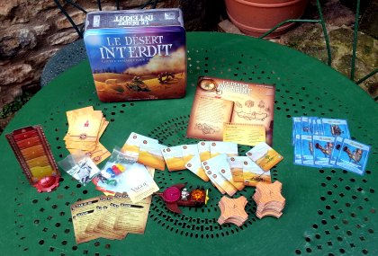 Matt Leacock récidive. Vous avez aimé L’Île interdite ? Vous allez adorer Le Désert interdit. Vous devez retrouver, dans un désert où les tempêtes de sable changent sans cesse le paysage, les pièces qui permettront de mettre en route une extraordinaire machine volante. Mais le sable recouvre inexorablement les lieux que vous découvrez. Comme dans L’Île interdite, vous coopérez pour gagner et chacun dispose de capacités spécifiques à son métier. Comme dans L’Île interdite, il vous faudra quelques parties pour acquérir de la méthode. Et quand vous gagnerez plus fréquemment, rien ne vous empêche de compliquer l'affaire en commençant la partie un ou deux crans plus haut sur l'échelle de difficulté. Le matériel est exemplaire, avec en particulier une machine volante et ses pièces détachées de toute beauté. Beau et bon jeu !
