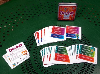 Comme souvent dans les jeux de la collection Jeu de poche, on ne perd pas de temps dans les explications de règles pour passer rapidement un agréable moment. L'idée de Devino est de trouver la réponse à une question, en sachant que cette réponse se cache sous la forme d'un anagramme composé à partir de certaines lettres du dernier mot de la question. Par exemple, « Ce jeu est-il de votre invention ? » — « Non ! » (on acceptera aussi « Nenni ! » ). On se laisse preendre facilement à ce jeu d'esprit qui peut parfaitement se pratiquer autour d'une table de salon comme en voiture. Simple et amusant.