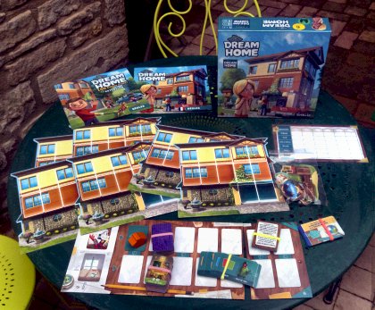 Maison, sucrée maison ! (Home, Sweet Home) 2 à 4 joueurs s'affrontent dans Dream Home pour créer la plus belle maison. La taille et la forme de la maison vous ont été imposées mais vous allez pouvoir rivaliser dans l'aménagement intérieur. À tour de rôle vous allez récupérer une carte pièce et un élément supplémentaire — toit, outil, décor ou assistant — qui seront des aides pour embellir votre pavillon. La maison n'étant pas extensible, il vous faudra choisir quelles pièces installer ou non. Un minimum de confort pratique (une salle de bains et une cuisine, par exemple) seront des plus au moment de l'évaluation finale. La règle est très facilement abordable. Le principal défaut, c'est de ne pouvoir jouer à plus de 4. Heureusement (et malheureusement pour votre bourse), une extension permet, entre autres, de monter jusqu'à 6 joueurs.
