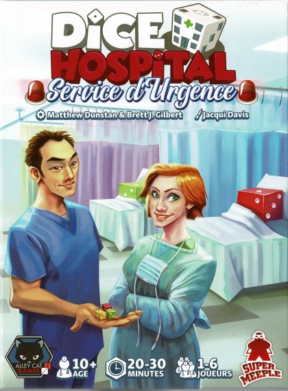 Grand amateur de Encore et Encore ! et de Welcome to…, je ne pouvais qu'être séduit d'emblée par Dice Hospital - Service d’Urgence. Le jeu reprend le titre et le thème de Dice Hospital. Il s'agit ici d'un petit jeu rapide de placement de patients (des dés) qui arrivent dans votre hôpital par un flux continu de 24 ou 25 ambulances. À chaque arrivée, le joueur actif peut choisir son patient : un dé d'une valeur et d'une couleur donnée associé à un avantage. Les autres joueurs se débrouillent avec l'un des deux patients restants.
