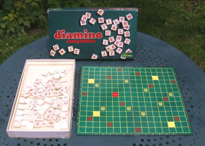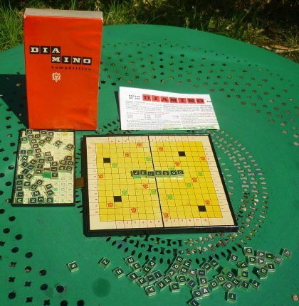 Diamino compétition utilise les mêmes lettres que Diamino, mais en plus grand nombre. Au total, il y a cent dix lettres plus deux jokers, les fameux diables emblématiques de la marque.