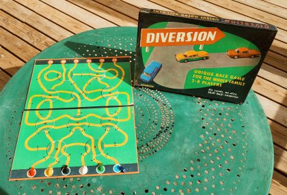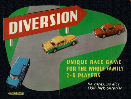 Présenté comme un jeu sans cartes ni dés, Diversion est effectivement un jeu sans aucun générateur de hasard, ce qui n'empêche pas que la plus grande incertitude existe, du fait des décisions des adversaires. Chaque joueur à son tour avance sa voiture de une à quatre cases. S'il termine son déplacement sur une case marquée d'un point noir, il peut tourner l'une des plaques de carrefour à sa volonté, à condition qu'aucune voiture ne s'y trouve. Une voiture qui parvient à rejoindre une des cases d'arrivée marque les points correspondant – de 25 à 75 – et retourne au départ. Le premier qui gagne 100 points remporte la victoire. Astucieux et "Vintage"