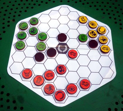 Les pièces ne disposent plus que de six directions au lieu de huit, mais cela ne change pas fondamentalement les possibilités. Plus aucune excuse, donc, pour échapper à une partie de Djambi quand on n'est que trois autour de la table. |