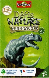 Une pastille colorée, en haut de la carte, indique la durée de leur passage sur la terre. Les animaux marqués d'une pastille rouge ont habité la terre moins de 4 millions d'années, ceux marqués d'une pastille verte, plus de 6 millions d'années. Les cartes du jeu peuvent être mélangées avec celles de Défis Nature - Dinosaures 1. |