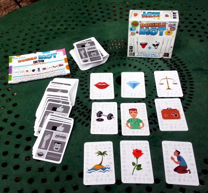 Le concept de Double Mot est simple : parmi les neuf cartes présentes sur la table, vous devez en trouver deux que vous associez pour former un titre, un adage, une expression ou quoi que ce soit qui sera validé par l'assemblée des joueurs. L'idée est amusante et, vous l'aurez compris, tout tient dans la bonne foi de vos partenaires de jeux.