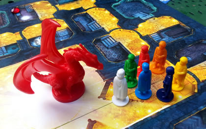 Comme dans tous les jeux d'objectif secret, la difficulté consiste à ne pas dévoiler trop ouvertement ses ambitions et ses champions. Les parties se jouent en deux manches, les faces du plan de jeu présentent des particularités qui demandent d'adapter sa tactique. On y joue avec le même plaisir qu'a Heimlich & Co, un jeu assez similaire qu'on a aujourd'hui du mal à acheter. Drachenhort n'existe pas en version française. Mais vous pourrez trouver une traduction de votre serviteur dans les liens.