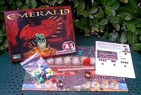 Emerald est clairement de cette veine : les règles sont simples, les parties rapides. Un léger hasard pimente les parties, qui sont surtout réglées par le calcul et la combinaison. À l'aide de vos chevaliers, vous essayez de gagner le plus de points possible en accumulant les pièces d'or, mais aussi les pierres précieuses. Il faut éviter le dragon qui vole au-dessus du chemin. Les déplacements ne doivent rien à la chance, puisqu'un chevalier avance d'un nombre de case égal au nombre de pions sur la case qu'il quitte. Vous avez bien sûr le choix du chevalier que vous déplacez. Il est parfois avantageux d'être en tête, parfois mieux d'attendre. Le thème fantastique ne doit pas vous tromper. Il s'agit d'un jeu résolument familial et facilement maîtrisable. Les règles, écrites à l'allemande, et très bien traduites par Bruno Faidutti, ne sont pas du tout compliquées. Le jeu conviendra aux familles et aux amis qui cherchent un jeu court et très interactif. Un jeu qui ne prendra pas la poussière. |