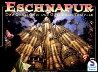 La première impression, quand on ouvre la boîte d'Eschnapur, c'est la quantité de matériel, et en particulier la statuette de Bouddha en véritable résine de synthèse. Eschnapur est basé sur un système d'enchères très original, où tout le monde ne cherche pas forcément la même chose. À l'occasion de la phase d'enchères, on peut avancer au score, gagner un trésor utile ou passer au distributeur d'ors.