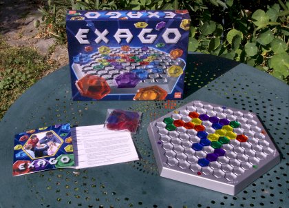 Exago est une adaptation fort intéressante du classique jeu du Morpion, avec des pièces sur un réseau hexagonal. Les joueurs possèdent huit pièces et doivent essayer d'en aligner quatre. Si, à l'issue de la phase de pose, personne n'a atteint l'objectif, le jeu continue en déplaçant une pièce.