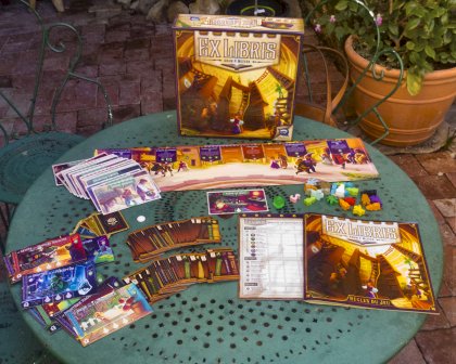 Vous voici bibliothécaire ! Pour gagner une partie de Ex libris, il va falloir user d'astuce pour récupérer et ranger les livres les mieux notés. Mais en bibliothécaire consciencieux, vous vous devez de les présenter en ordre alphabétique, ce qui n'est pas toujours facile. Lors de manches successives, vous allez lancer vos assistant chercher des livres et les ranger, parfois en piochant simplement des cartes, mais le plus souvent en faisant appel à des officines spécialisées qui permettent des actions plus intéressantes. Un mode avancé met en œuvre des assistants avec des pouvoirs spéciaux. je ne vous conseille pas de choisir tout de suite ce mode, le jeu de base étant déjà assez complexe à maîtriser. Ex libris est une agréable surprise, tant de par son thème inhabituel que par la forte interaction entre les joueurs.