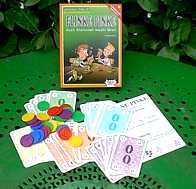 La petite boîte suffit à contenir tout le nécessaire pour jouer : 30 cartes et 25 jetons. Tout est dans la règle ! Il est étonnant que Flinke Pinke n'ait été cité dans aucun grand concours à ma connaissance. Rapide, drôle, agaçant, Flinke Pinke fait partie de ces jeux auxquels j'aime jouer, tout en sachant que je ne gagne jamais. Si le jeu vous semble trop simple, mais que vous aimez le principe, essayez Campanile. |