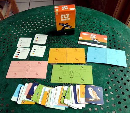 Fly Home! est un jeu coopératif basé sur la mémoire. Après avoir retourné trois cartes face visible, vous pouvez ramener l'un des trois oiseaux dans son habitat si les trois oiseaux ont une caractéristique commune qui correspond à l'une des trois caractéristiques tirées en début de partie. Les autres cartes sont ensuite retournées face cachée. Idéalement, il faudrait qu'un ou deux joueurs essayent de se rappeler les cartes cachées. Lors de vos premières parties, vos résultats ne devraient pas être fabuleux. Par la suite, la connaissance des différents oiseaux facilite la mémorisation et le score final s'améliore. Il sera alors temps de passer au mode expert !