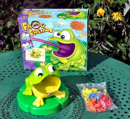 Frog Frenzy est une grosse grenouille très gourmande. Chaque joueur dispose de quatre insectes à ressort. Il va essayer de les propulser avant les autres dans la gueule du batracien. Cela n'est pas chose aisée, parce que l'animal tourne en permanence sur son nénuphar.