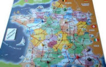 Les joueurs se déplacent sur une jolie carte de France, jettent les dés et choisissent une question selon le résultat des dés. Le but est bien sûr de briller dans une majorité de régions. |