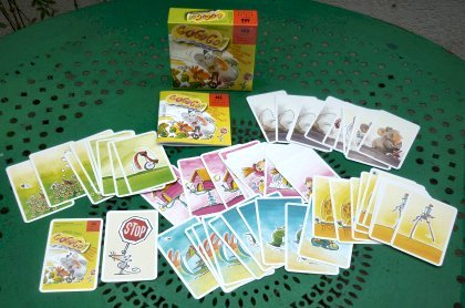 Jeu de rapidité, GoGoGo! s'adresse aux très jeunes joueurs. Le but du jeu est de recupérer quatre animaux identiques ou différents devant soi. Pour cela, les joueurs choisissent tous une carte en main, correspondant à cet animal, et la retournent tous en même temps. Il faut alors se ruer sur l'animal visé car seul le premier gagnera la carte. Le jeu est extrêmement simple, la difficulté pour les jeunes stratèges étant de faire la relation entre la carte maison et la carte animal.