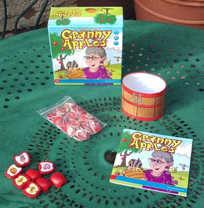 Il y a un peu de Bongo dans Granny Apples. Les animaux de la savane sont remplacés par des pommes mais il faut toujours compter plus vite que les adversaires : pommes, demi-pommes, vers qui mangent les pommes, tartes qui utilisent les pommes, oiseaux qui mangent les vers… Pas facile de s'y retrouver rapidement ! Granny Apples bénéficie d'une belle présentation; On apprécie la bonne idée des dés en forme de pomme et demi-pommes.