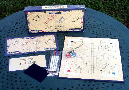 Le Hasdémo est un jeu de mots croisés véritablement ardu, au matériel agréable, mais qui suppose que tous les joueurs soient des cruciverbistes de haut niveau, dotés d'une bonne imagination. Il s'agit de remplir ensemble une grille de mots croisés, en suivant une règle lacunaire et peu convaincante. Heureusement, ce ne sont pas les bons jeux de lettres qui manquent.