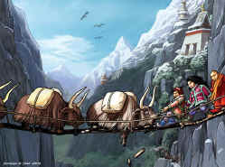 Himalaya, qui est le numéro 4 de la collection Tilsit, après Maka Bana, Kanaloa et Skåål, confirme l'intérêt de cette collection chez un éditeur désormais incontournable. L'essentiel du jeu n'ayant pas changé, je ne parlerai ici que des modifications apportées entre la version téléchargeable et la version présente. On a beaucoup parlé du design du plan de jeu, sur certains sites du microcosme ludique, en critiquant le fond blanc du plan, apparemment illisible. Le jeu est en fait beaucoup plus clair que dans la version initiale, et il faut rendre hommage au remarquable travail de Johann Aumaitre, qui était déjà responsable des illustrations et sculptures du premier tome de la collection. Les lettres des chemins ont été habilement remplacées par des types de route, glace, pierre ou terre. Le nombre maximum de chemins a été réduit à trois, et les régions qui apparaissent maintenant clairement au milieu des chemins-frontières ont été débarrassées de leur numéro inutile. La qualité des sculptures est à l'égal de la qualité du matériel imprimé, même si on aurait pu souhaiter qu'elles soient un peu plus grandes. Enfin la magnifique illustration de la couverture, due au talent de David Cochard, vient compléter l'ensemble.