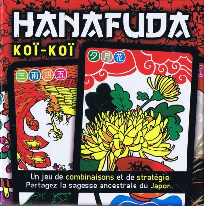 Koi-Koi est la règle la plus pratiquée avec les quarante-huit cartes du Hanafuda. Le but du jeu est de former des combinaisons, appelées Yaku (il est de bon ton d'employer des mots japonais pour devenir de vrais joueurs de Hanafuda - Koï-Koï). Si le Koi-Koi ressemble un peu au Rami occidental, il s'en écarte par de nombreux aspects. Plusieurs règles optionnelles et variantes permettent de complexifier les parties si les deux adversaires le désirent. La très bonne idée de l'éditeur Robin Red Games est de nous proposer un Hanafuda adapté aux occidentaux, avec un jeu de taille standard et, surtout, des icônes permettant de repérer facilement les cartes qui entrent dans une combinaison. La pratique du jeu en est grandement facilitée !