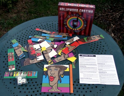 À première vue, Hollywood Casting ressemble à Mic mac ou à Twiga. Mais les apparences sont trompeuses, car le jeu utilise en fait des mécanismes de choix rapide et une légère prise de risque. Le but du jeu est de créer le visage le plus long possible, en assemblant les divers éléments. Lorsqu'on a fini de créer son visage, on peut encore l'améliorer en attendant que tout le monde ait fini. Mais attention : on doit choisir une pièce du type ou de la couleur indiquée par les dés, et ce en un temps plus que limité.