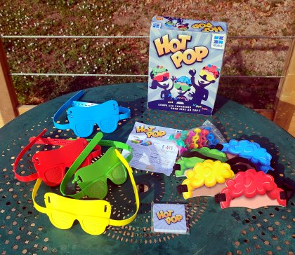 L'auteur de Hot Pop n'est mentionné ni sur la boîte ni sur la règle. Mais on reconnaît facilement la patte de Roberto Fraga dans ce jeu frénétique. La but du jeu est de gagner les cartes révélées au centre de la table en assemblant deux à quatre ventouses selon les indications portées sur ces cartes. Parfois, on voit des ventouses, parfois des noms de couleurs. Mais méfiez-vous car quelques cartes font appel à l'effet Stroop, une couleur écrite dans une autre couleur pour ajouter à la confusion. Par exemple JAUNE BLEU. À chaque carte gagnée, le lauréat doit prendre une des ventouses utilisées pour la séquence et la placer sur son front. Et comme les ventouses sont en nombre limité, il faudra se souvenir qu'elle est là.