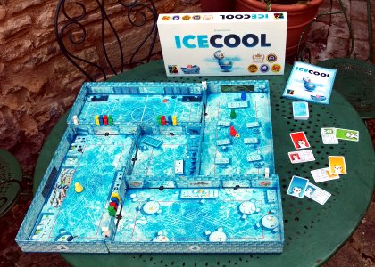 L'originalité de Icecool ne réside pas dans le mécanisme : le jeu n'est ni le premier ni le dernier jeu de pichenette. C'est le matériel qui est étonnant : pas moins de cinq fonds de boîte emboîtés les uns dans les autres pour faciliter le rangement et qui, assemblés, donnent un impressionnant terrain de jeu.