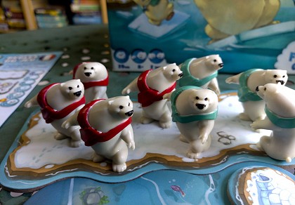 Le plan de jeu est constitué de 32 cases. Certaines de ces cases sont dérivantes. Plusieurs cases disparaissent après utilisation. Comme pas moins de 8 ours tentent de se frayer un chemin, les bouchons sont fréquents et il n'est pas rare qu'un joueur se retrouve incapable d'avancer le moindre de ses ours, ce qui est un peu frustrant, mais ce qui peut réjouir son adversaire. Pour un jeu à deux de 20 minutes, les règles sont presque un peu trop compliquées, d'autant que le hasard des dés peut décider de l'issue de la partie.