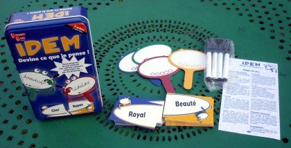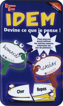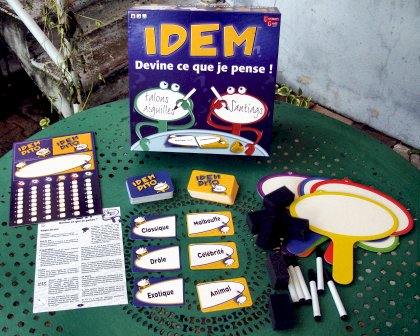 On retrouve un peu de l'esprit d'Unanimo dans Idem puisque, là aussi, le but est de trouver le même mot que les autres joueurs. Le jeu contient un dé qui détermine le type de manche : « Chacun pour soi », « En dessinant » ou « Travail en équipe ». Je vous autorise (je suis bon) à ne pas utiliser ce dé qui n'apporte pas grand-chose au plaisir du jeu.