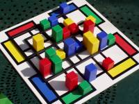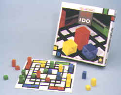Ido m'avait toujours intrigué avant que je n'aie l'occasion d'y jouer. La sobriété du tablier et des pièces font immanquablement penser à de l'art abstrait, et plus particulièrement à Mondrian. Le design et l'abstraction ne plaisent pas forcément aux joueurs qui fréquentent habituellement les sites ludiques. Pour ma part, j'apprécie de temps à autre un bon jeu « prise de tête », et Ido est certainement l'un des meilleurs de son type. Vous pourrez découvrir dans la règle les mécanismes assez simples qui le régissent. Bien sûr, le tablier convient plus à deux ou quatre joueurs qu'à trois. Pour qu'Ido reste un jeu abstrait stratégique, on peut même jouer à deux contre deux, soit l'un en face de l'autre, soit côte à côte.
