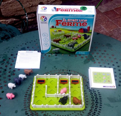 Les animaux de la ferme sont au pré ! Si, si, en 2019, cela arrive encore que des animaux vaquent en pleine nature en marchant à même la terre… Enfin, tout du moins, dans les jeux, dont celui-ci : Il était une ferme. Le souci, c'est qu'ils ne s'entendent guère et que le fermier — vous — doit les séparer. Pour cela il ne dispose que de trois barrières qu'il doit disposer judicieusement pour partager le terrain. Et pour certains défis, il faut en plus que chaque espèce dispose de son propre abreuvoir ! Les défis sont assez abordables, ce qui destine le jeu plutôt aux jeunes joueurs. Les figurines sont à craquer, ce qui ajoute encore au plaisir.