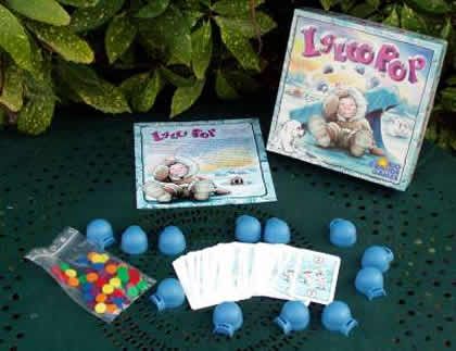 Ici, pas de course. Il s'agit de trouver les igloos qui contiennent le même nombre de billes que les cartes étalées sur la table. Les cartes montrent un, deux ou trois nombres, et rapportent respectivement trois, deux et un points si on trouve le bon nombre. De plus, on gagne un point chaque fois qu'on trouve le bon nombre, et qu'un imprudent a misé un mauvais igloo sur une carte. Si le principe est le même, les changements entre les deux titres sont notables : partie plus courte, nombre de participants accru, possibilité de sélectionner plusieurs igloos. De fait, il faut être à la fois rapide et réfléchi. Prendre inconsidérément un igloo pour le poser n'importe où peut s'avérer désastreux. Igloo Pop est très réussi, et même mignon comme tout. En revanche, on ne croit pas un seul instant à l'histoire du géant des glaces, qui va faire ses courses en secouant des igloos. Les teutons raffolent de thèmes et celui-ci en est un comme un autre. Il est totalement plaqué, mais personnellement ça ne me gêne pas. |