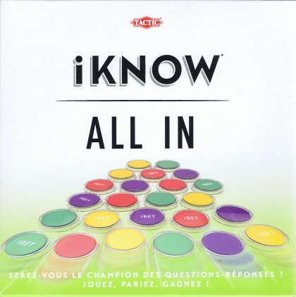 IKnow All In est un simple jeu de connaissances à choix multiple. Quatre réponses sont proposées pour chaque question. Comme chez son grand frère Iknow, vous pouvez parier sur les réponses de vos adversaires pour gagner encore plus de points (ou en perdre). Plus simple et plus facile à mettre en place que Iknow. Les 1200 questions assurent une belle durée de jeu.