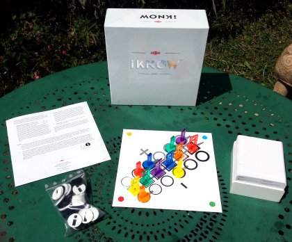 Iknow est un quiz qui reprend le même principe que Gambit 7 ou Trivial Pursuit Casual, à savoir répondre aux questions, mais aussi parier sur les réponses des adversaires. Chaque question dispose de trois indices. Répondre dès le premier rapporte trois points, un seul si on répond après le troisième indice. Mais il faudra décider combien de points on veut engranger dès le début de la question, avant de connaître le moindre indice. Les débuts de questions ne donnent qu'une idée du domaine de compétence : « Quel acteur célèbre ? », « Quel animal ? ». À chacun de juger combien d'indices lui seront nécessaires pour répondre. Une fois les pions des joueurs posés sur les cases à un, deux ou trois indices, il vous faut parier sur la réponse, juste ou fausse, d'un adversaire. Il faut toutefois savoir que les joueurs qui ont opté pour les trois indices pourront profiter des réponses adverses avant de donner leur proposition. Il y a donc de grandes chances qu'ils répondent juste. Le parti pris éditorial, avec ses clins d'œil aux amateurs de i-machins de la firme à la pomme, pourra plaire ou non. Quoi qu'il en soit, le matériel est de qualité, et les questions largement assez nombreuses pour que la boîte dure quelques soirées.