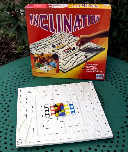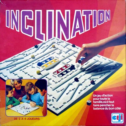 Inclination, également publié sous le nom de Tilt, appartient à la grande famille des jeux de poursuite entre pions. Ici, l'élément nouveau est la gravitation. Selon le nombre de billes d'un côté ou de l'autre de la balance, le plan de jeu s'incline, faisant bouger certaines billes qui gagnent ou perdent alors de l'avance. Le hasard joue un rôle important, mais pas primordial. Un bon sens tactique donne un avantage certain dans cette drôle de course.
