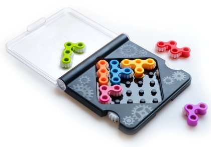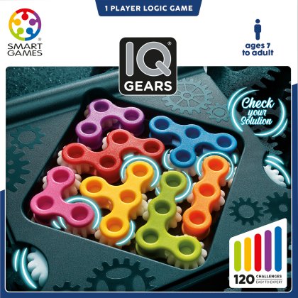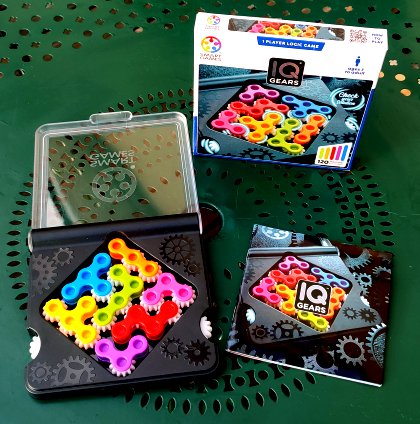 Dans la vaste gamme de la série IQ de l’éditeur Smart Games, IQ Gears se distingue par un design aguicheur très réussi. 7 pièces seulement suffisent à remplir cette boîte (contre 12 pour le classique Puzzler pro), ce qui fait sans doute de cet opus l’un des plus simples des casse-tête IQ ou, devrais-je plutôt dire, l’un des moins difficiles.