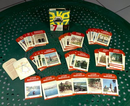 La règle du Jeu des 7 grandes routes est exactement celle d'un jeu de 7 Familles. L'intérêt réside surtout, pour l'amateur de vieilleries, dans les photos des lieux traversés par les grandes routes, avant l'apparition des autoroutes. On est un peu étonné par le choix des étapes. Par exemple, les étapes de la route Paris-Lyon sont successivement Paris, Fontainebleau, Moret, Auxerre, La Rochepot, Tournus et Lyon. On se demande un peu pourquoi une commune de 300 habitants comme La-Roche-Pot