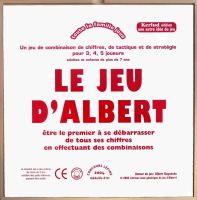 La présentation est spartiate. La boîte en bois comporte le tablier de jeu en fond, ainsi que cinq chevalets en carton et quatre-vingts pions. Bien entendu, Albert les a réalisés dans la mousse qu'il affectionne tant, et qui est un peu la marque de fabrique de ses créations. Le Jeu d’Albert est une sorte de jeu de dominos. Les pions sont intégralement distribués, et chacun en reçoit sa part. Il va falloir s'en débarrasser en formant des groupes de trois pions qui se suivent, et qui seront ensuite placés sur le tablier. Comme il n'y a que six bases de construction, il faut agir finement pour se défaire au plus vite de pions qui peuvent devenir de véritables boulets. Quand, par exemple, on aura posé 11-12-13 et 16-17-18, ceux qui possèdent sur leur chevalet le 14 et le 15 peuvent commencer à envisager d'en faire des confitures. En revanche, poser le troisième pion d'une série permet de rejouer. Bien sûr, le hasard intervient beaucoup dans le tirage des pions. Mais certains s'en sortent toujours mieux que d'autres… |