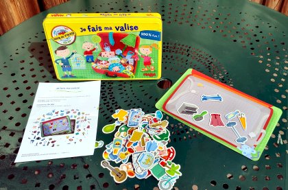 Je fais ma valise propose un joli matériel pour pratiquer le classique jeu de mémoire « Dans ma valise ».
