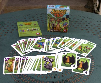 Pas de hasard dans Jungle Trip. Mais beaucoup d'impondérable puisque, selon les cartes jouées simultanément par tous les joueurs, vous pourrez tout aussi bien gagner avec la plus petite d'entre elles, un 1 que perdre avec la plus haute : un 6 ! En effet, les cartes de même valeur s'annulent. L'idée est bonne mais elle n'est pas vraiment nouvelle : Alex Randolph l'avait déjà mise en œuvre dans son jeu Stupide Vautour ! dès 1998.