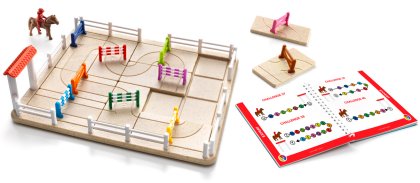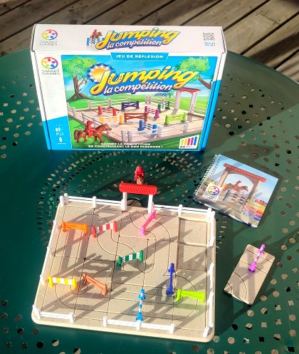 C'est évidemment une cavalière qui doit résoudre les 80 défis proposés par Jumping - La Compétition. On positionne la cavalière et le portique de sortie devant les emplacements indiqués, puis il s'agit de placer les morceaux de parcours judicieusement pour que tous les éléments indiqués soient sautés dans l'ordre. Parfois, une ou plusieurs barrières sont sautés plusieurs fois, mais aucun défi ne met en œuvre les dix pièces du parcours. D'où le défi n°81 : parviendrez-vous à créer un parcours utilisant les dix pièces de jeu ?