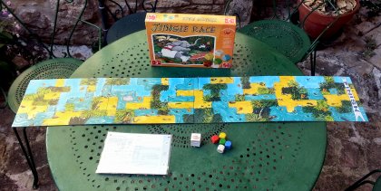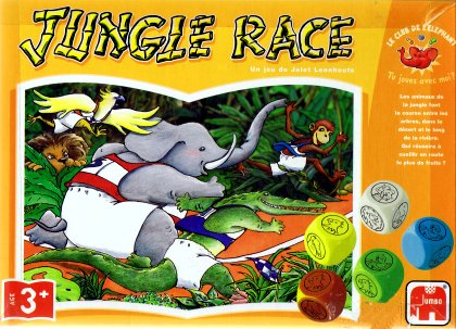 Contrairement aux apparences, Jungle Race n'est pas un jeu de course aux dés. En fait, chaque dé de couleur est le pion d'un joueur. Au tour du joueur, le dé blanc est lancé et indique sur quelle face le joueur doit tourner son dé-pion. Il peut alors se déplacer vers une zone qui correspond à son animal : le perroquet dans le ciel, l'éléphant dans la savane, le crocodile dans l'eau et le singe dans les arbres. Le but du jeu est de récolter plus de fruits que les adversaires. Arriver rapidement au bout de la piste donne un bonus. Le hasard est présent, bien sûr, mais il faut aussi analyser le terrain pour avancer astucieusement. Pas bête du tout…