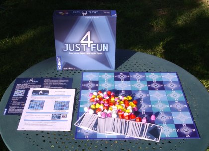 Just 4 fun est un jeu d'alignement. Pour gagner, vous devez prendre la majorité sur quatre cases alignées. Tous les joueurs peuvent occuper une même case, mais si un joueur parvient à y placer deux pions de plus que vous, vous ne pouvez plus rien y déposer. La case est déterminée par la somme des cartes que l'on joue.