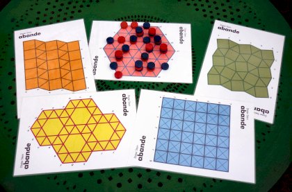 Il est possible de jouer à Abande sur d'autres types de tabliers. L'éditeur en propose deux. L'Escale à jeux, qui n'a peur de rien, vous en propose deux autres, basés sur les pavages semi-réguliers. Il est possible de se procurer Abande auprès de ses éditeurs, mais il est pratiquement introuvable en France. En attendant, vous pouvez vous confectionner un exemplaire personnel, puisque l'auteur a placé Abande sous licence Creative Commons. Vous trouverez les tabliers imprimables à la suite de la traduction des règles (voir plus haut). |